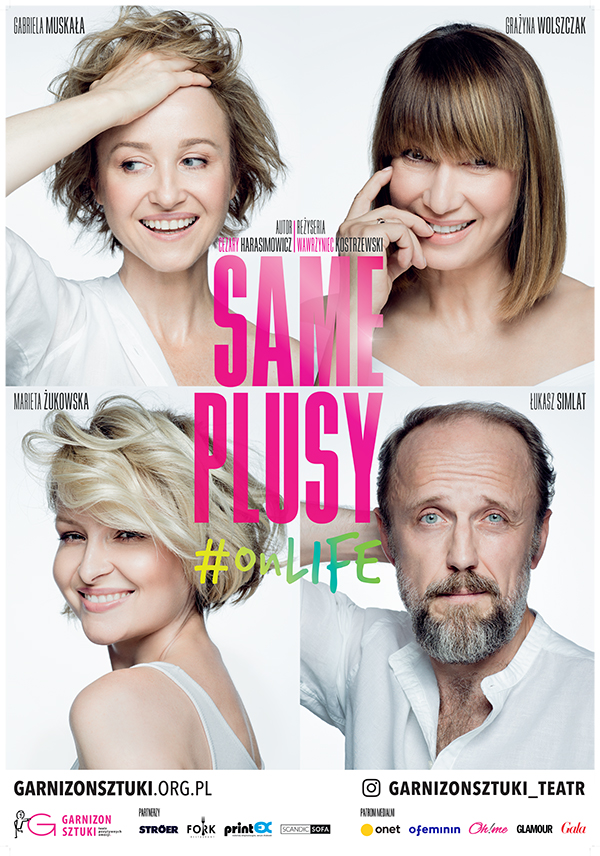 SAME PLUSY #OnLIFE- to komediodramat o tym, że w życiu warto ŻYĆ... nie tylko dla siebie. W spektaklu występują znakomici aktorzy: Gabriela MUSKAŁA, Grażyna WOLSZCZAK, Marieta ŻUKOWSKA i Michał CZERNECKI/Łukasz SIMLAT. Autorem scenariusza jest Cezary Harasimowicz a reżyserem wybitny, wyróżniony wieloma nagrodami reżyser teatralny i telewizyjny Wawrzyniec Kostrzewski.